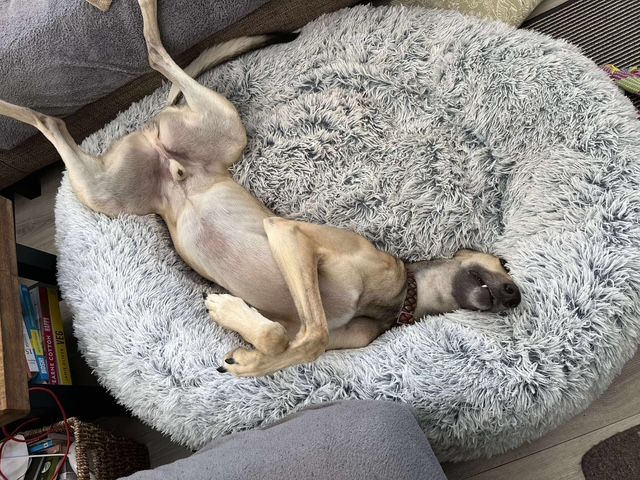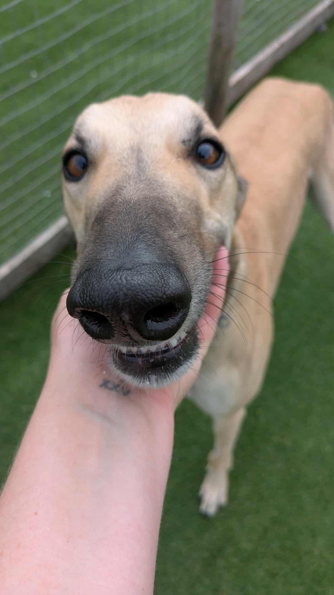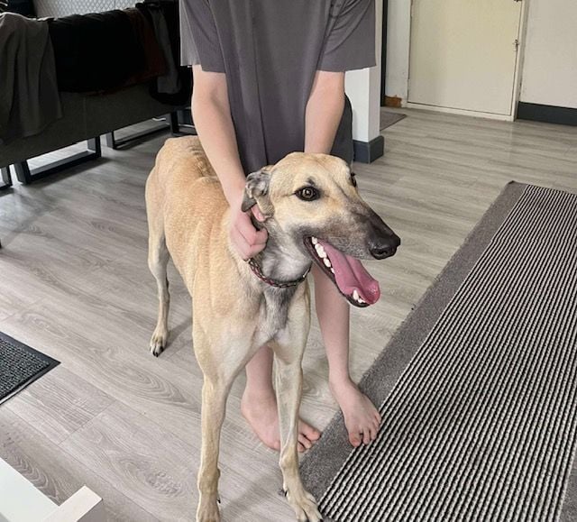 Mally is a two year old male Greyhound whois looking for his forever home. He is a sweet, playful and very affectionate hound, he likes to put his paws around you for a hug given a chance . He is currently in foster with a female Greyhound and has settled into home life well.